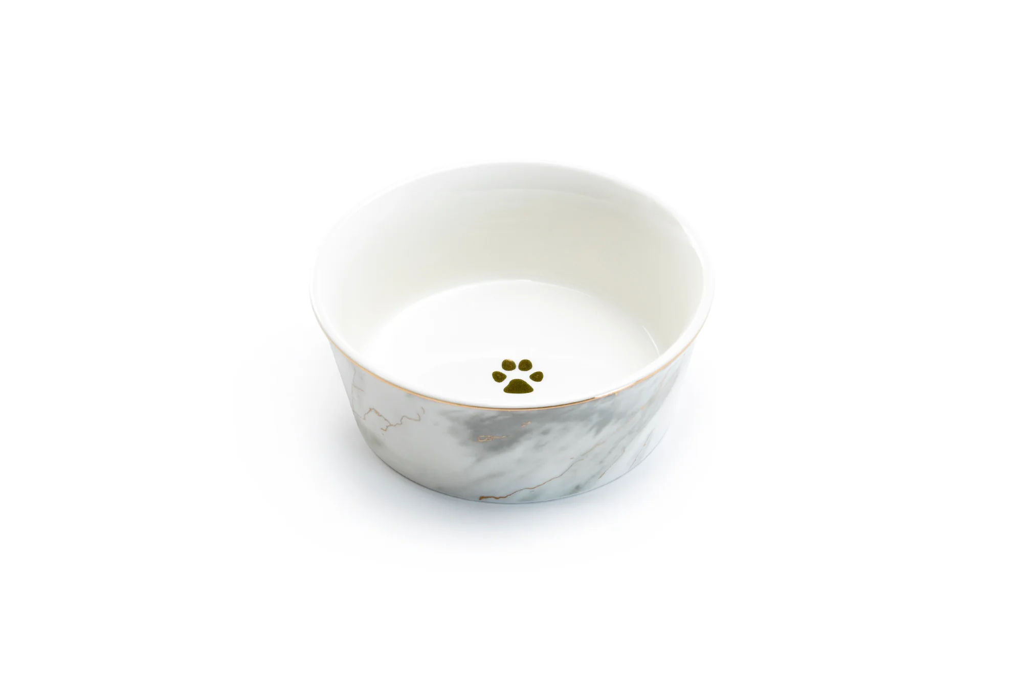 Gray Marble Gold Fine Porcelain Pet Bowl - 2 Sizes Available