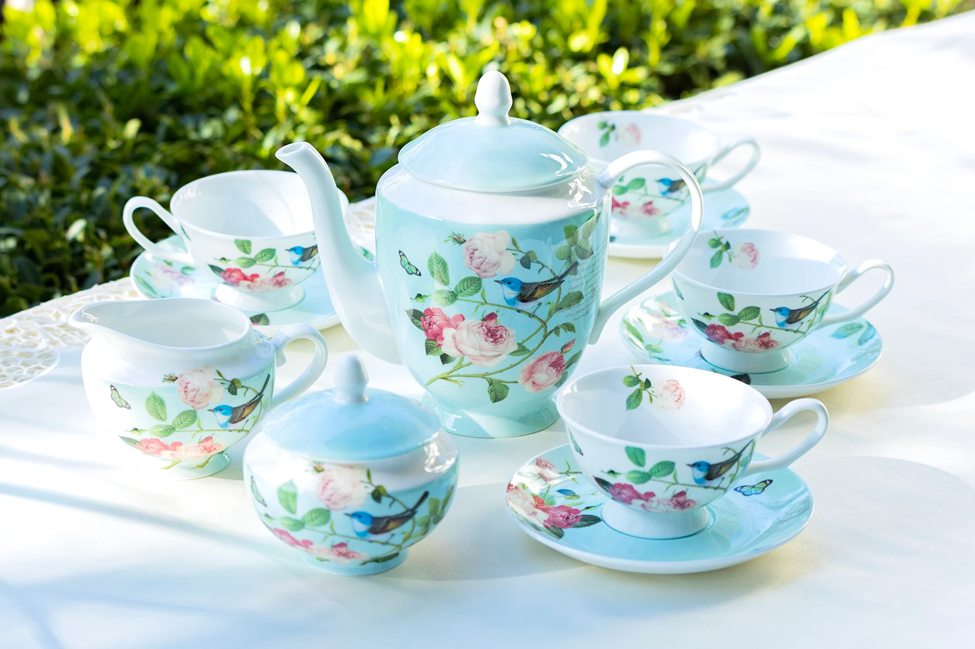 7.5" Blue Jay Pink Rose Garden Bone China Dessert Plate