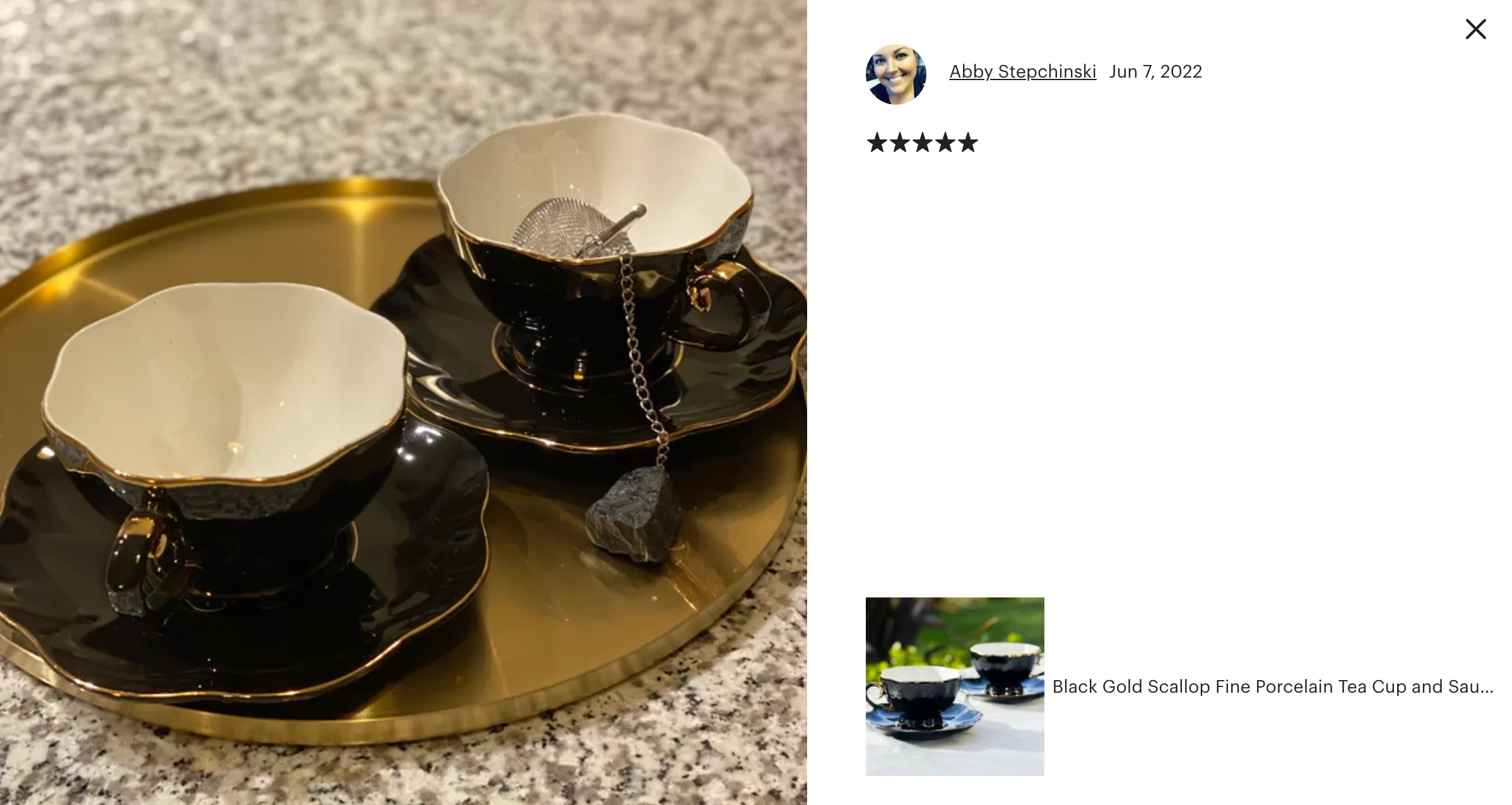 Black Gold Scallop Fine Porcelain Tea Cup and Saucer