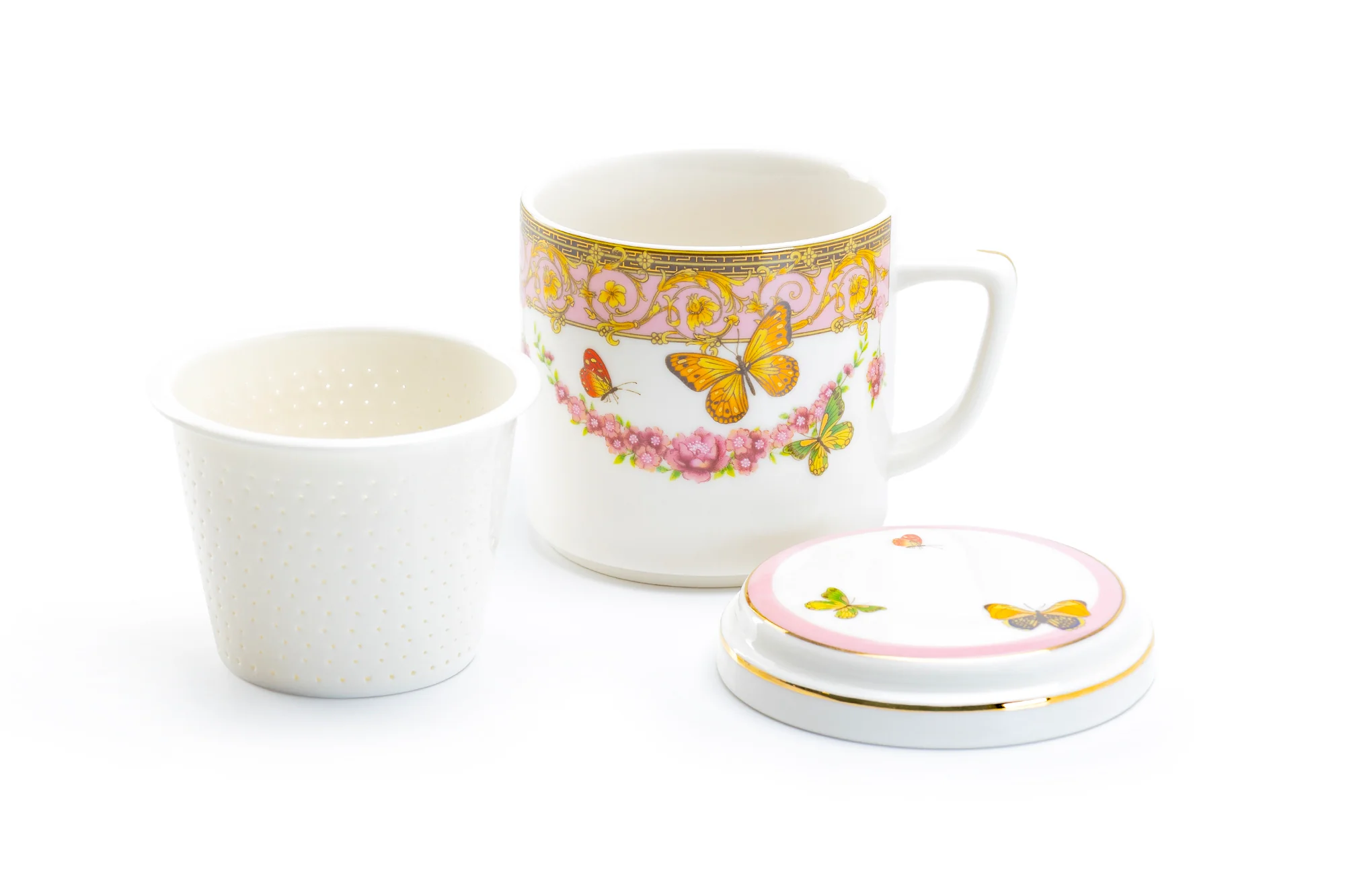 This 3-piece mug includes - one mug, one strainer and one lid