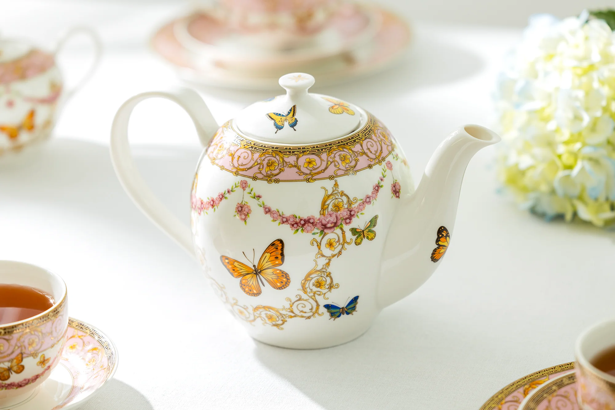 Butterflies with Pink Ornament Fine Porcelain Teapot