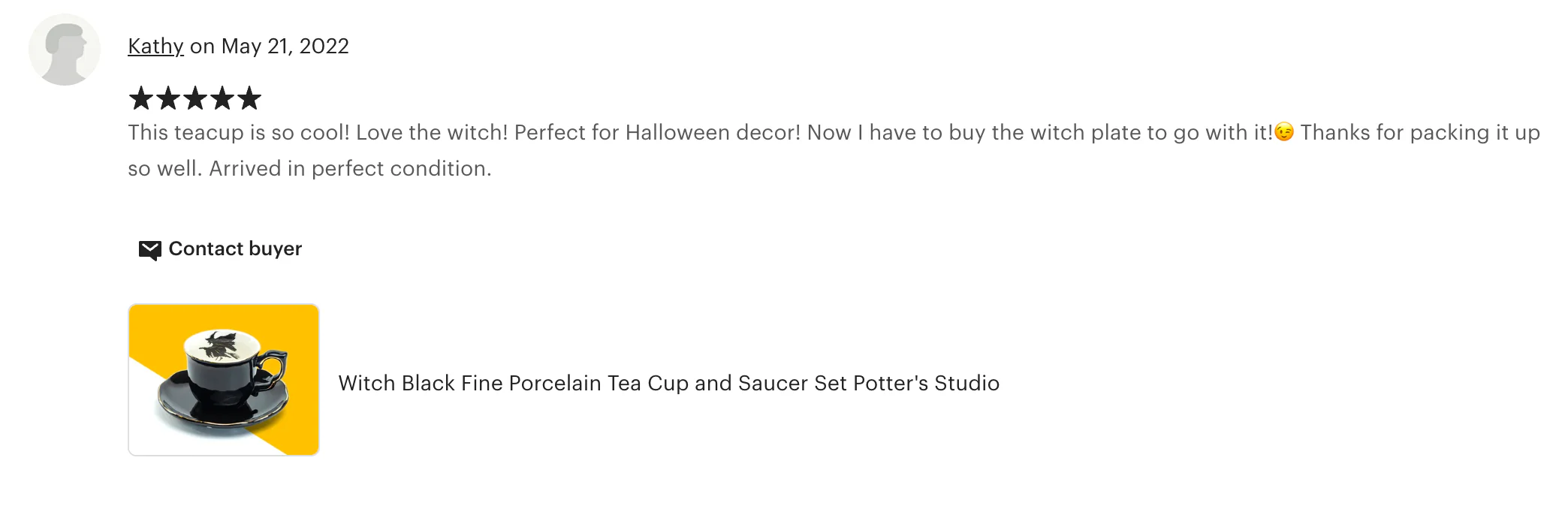 Flying Witch Black Gold Tea Cup and Saucer
