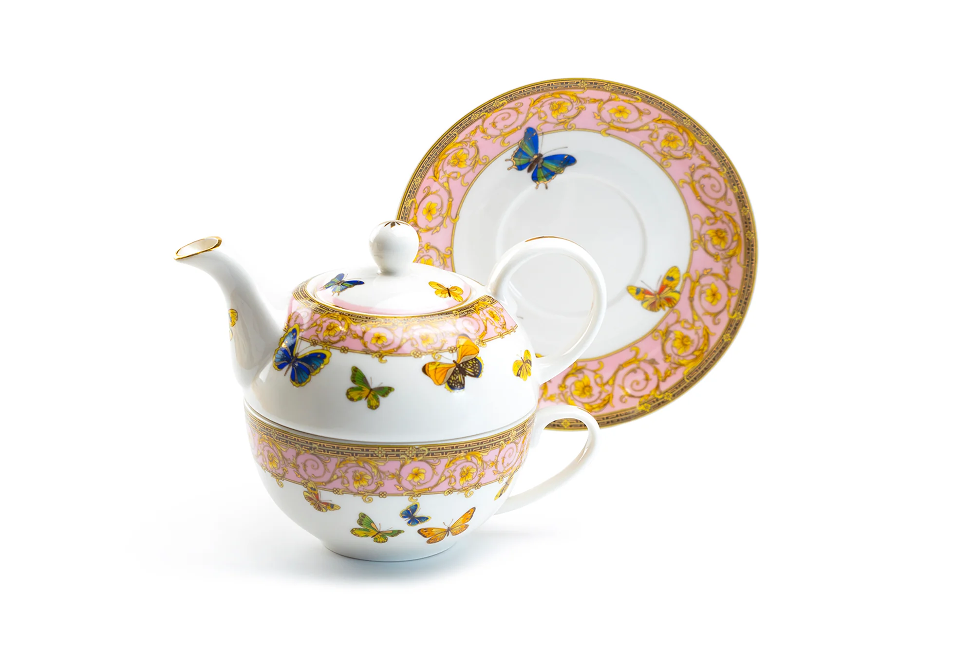 Butterflies with Pink Ornament Fine Porcelain Tea For One Set