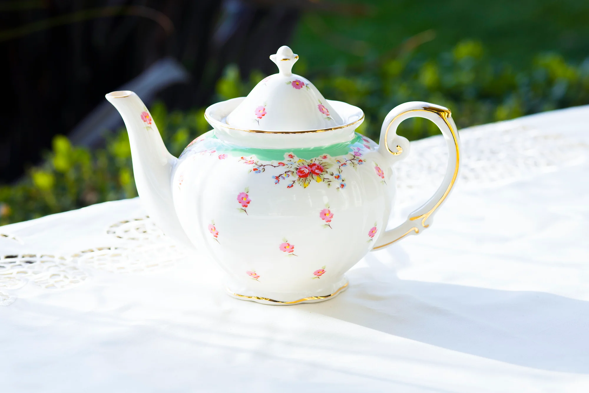 Rose with Green Accent Fine Porcelain 11-Piece Tea Set